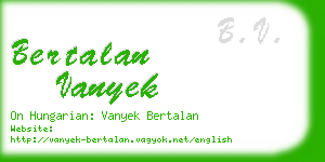 Welcome to BERTALAN VANYEK name analyzer. Attention - this page is analising the Bertalan Vanyek name, not the person named BERTALAN VANYEK!